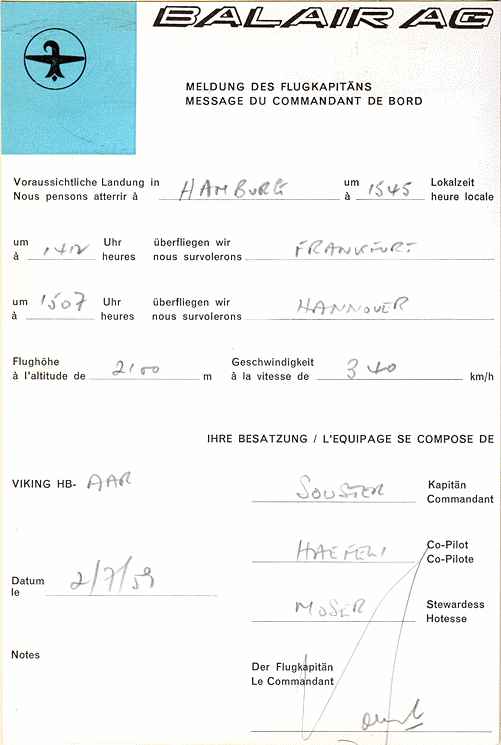 Die folgenden Aufnahmen wurden uns freundlicherweise von Christian Stöcklin zur Verfügung gestellt, der im Jahr 1959 diesen Flug an Bord der HB-AAR erlebte.