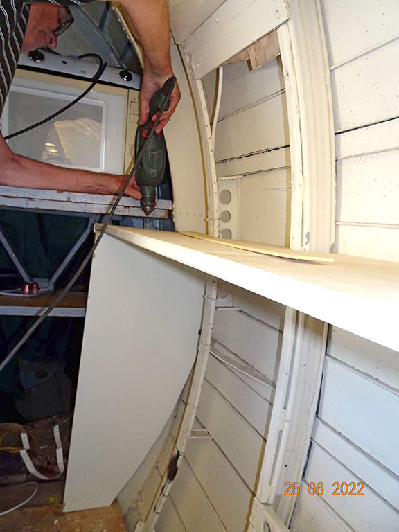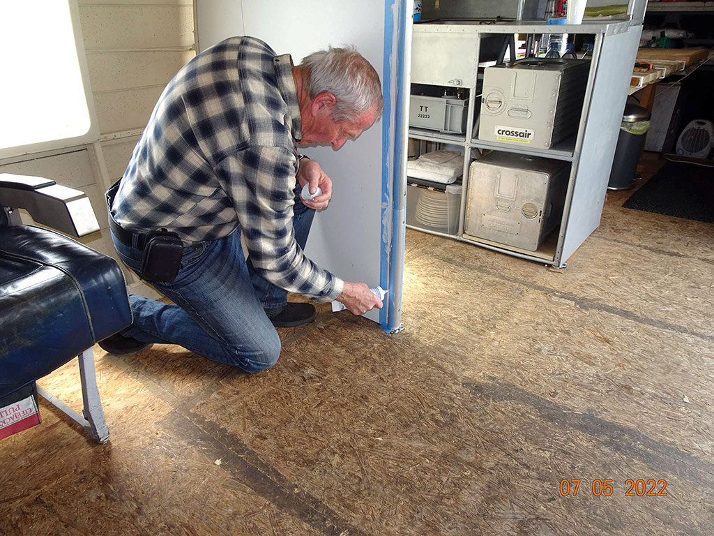 - Restaurierung der Fensterrahmen im Rumpfinneren