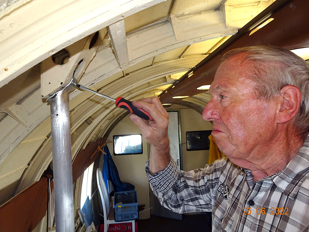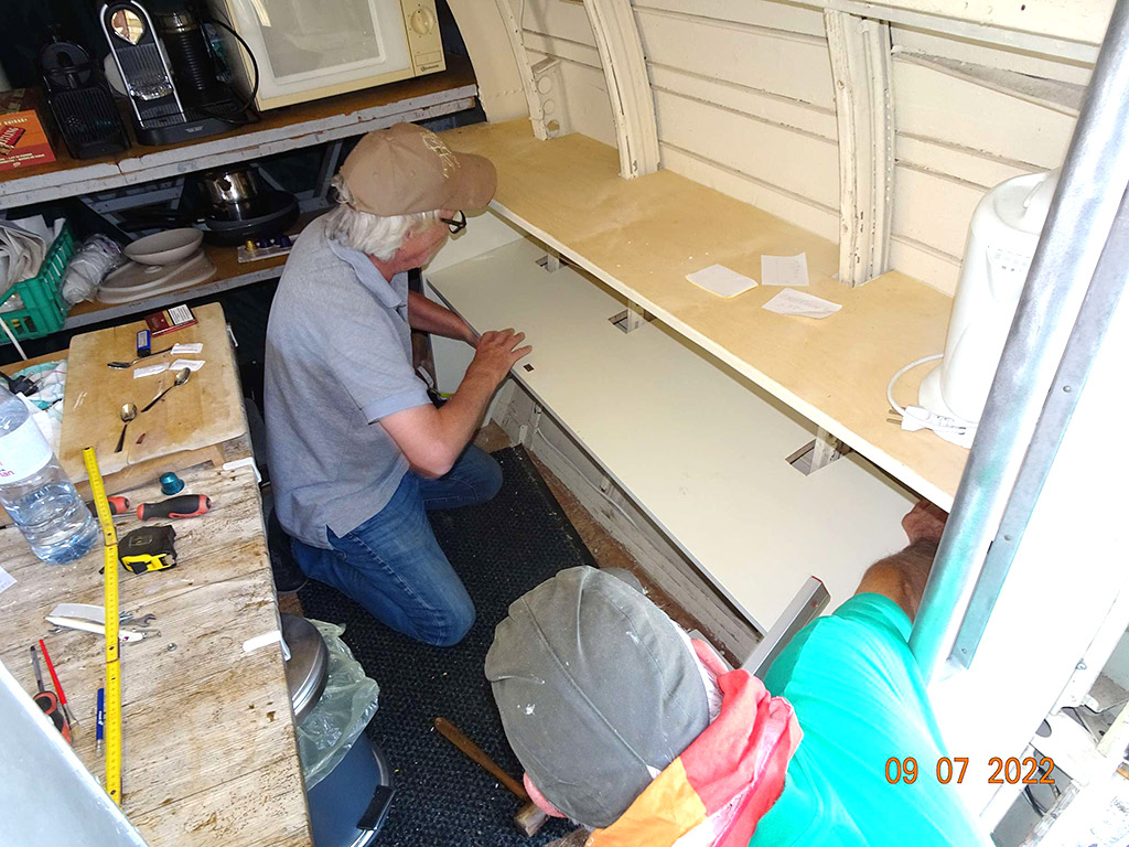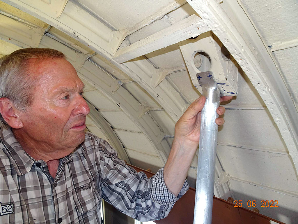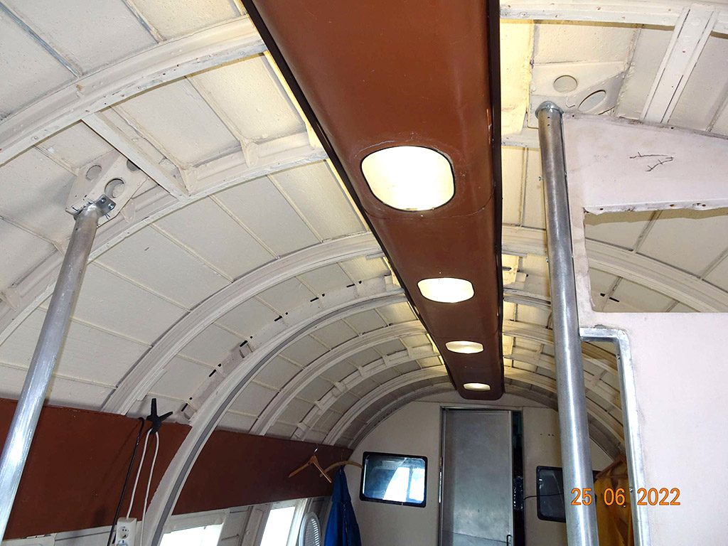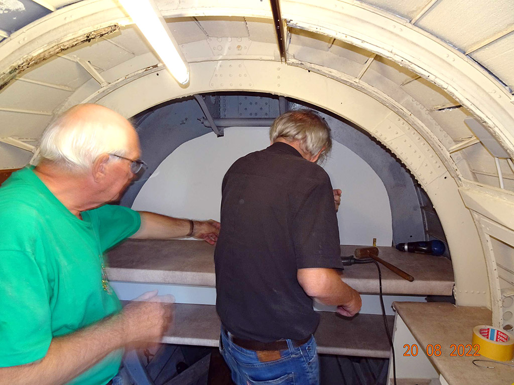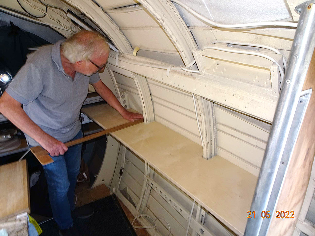 - Weiterführung der Restaurierung der Kabinen-Trennwände mit den originalen Herstellungsmethoden der damaligen Zeit (ca. 1946)